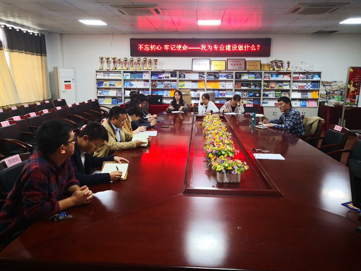 10月17日下午3点,机电工程与汽车服务学院机器人工程教研室在学院四楼会议室召开了“不忘初心,牢记使命——我为专业建设做什么”的主题教育研讨会,教研室全体教师参加会议。