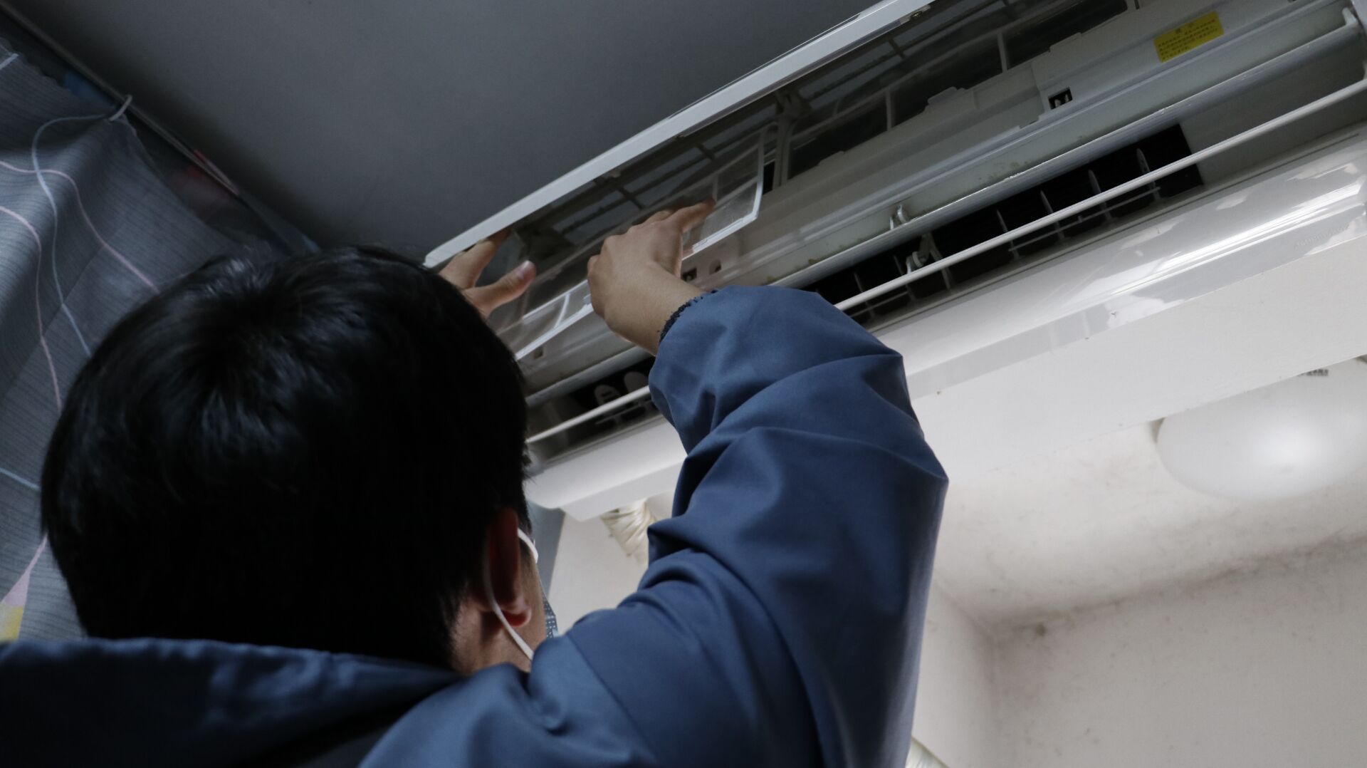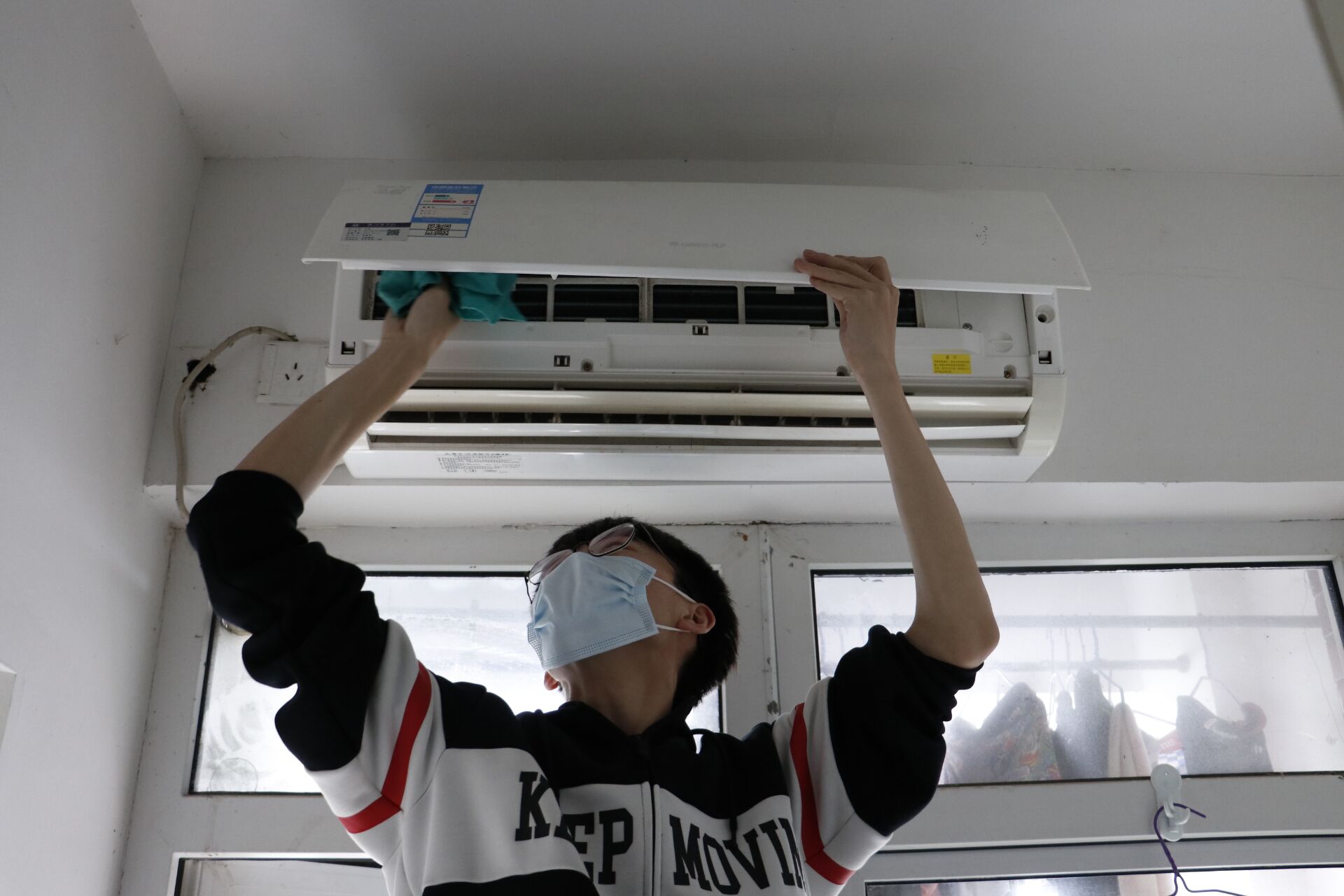 活动开始后,三人一组,带着清洗空调所需要的空调清洗剂、刷子、毛巾和梯子等工具分别前往活动寝室进行清洗。一个人负责拆卸空调外壳并将外壳擦拭干净,其余同学则负责清洗空调内部的两张滤网并晾晒干净,等所有清洗工作完成后再将滤网重新装回空调里。临走前将提前准备好的空气清洗剂赠送给寝室里的同学,同时告知他们关于空调清洗后使用的一些注意事项。