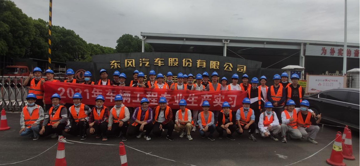 在东风公司,师生参观了整车装配厂房,该厂房共有两条生产线,第一条是零部件装配成车线,总长265m,主线有预装、车架上线、安装标准件支架、制动管路系统连接、装电喇叭和牵引座、加注燃油防冻防锈液、启动汽车排放尾气等26道工序流程。装配完成后的新车将进入第二条汽车检测线。此条检测线中设有加速度、制动刹车、速度、ABS防抱死系统、远近光灯开关等系列检测流程。在实习过程中,同学们近距离接触了设备生产线和生产产品,纷纷表示大开眼界,受益匪浅。