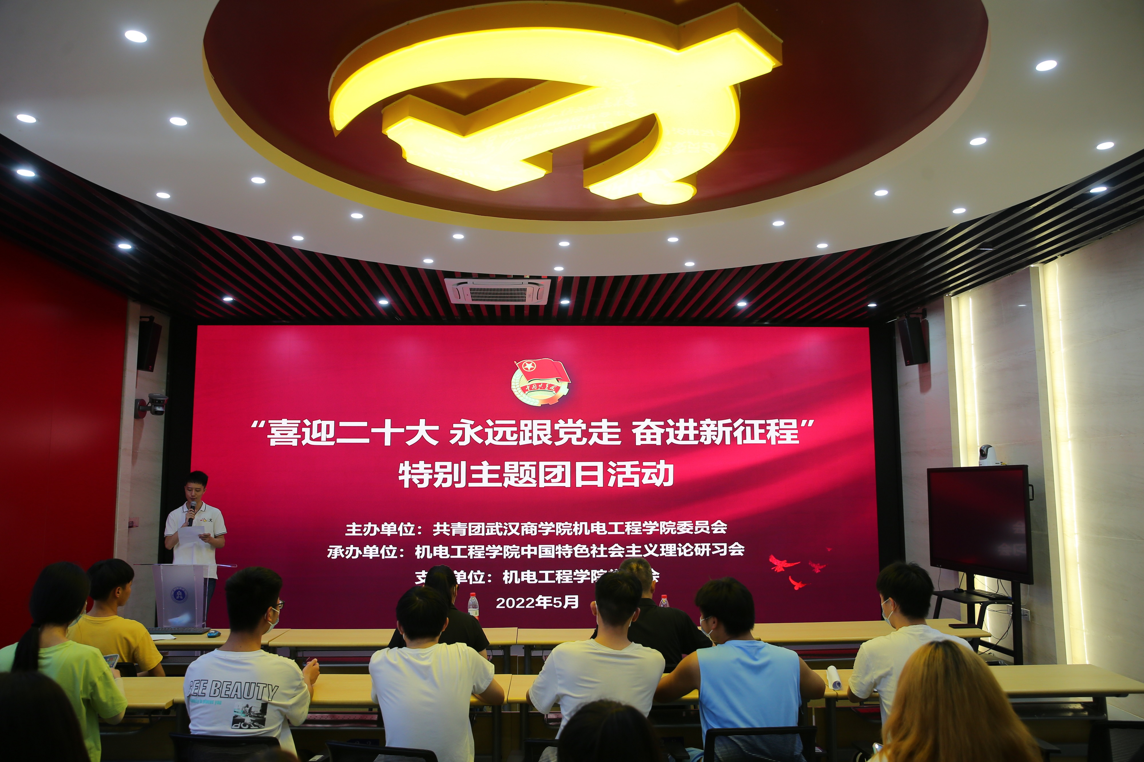 5月31日中午,由共青团永乐高ylg888888委员会主办,永乐高ylg888888中国特色社会主义理论研习会承办的“喜迎二十大,永远跟党走,奋进新征程”特别主题团日活动在智慧党建中心举行。本次活动由永乐高ylg888888分团委书记向俊主持,校团委书记江雯、永乐高ylg888888分党委书记张奔及员工代表参加此次活动。